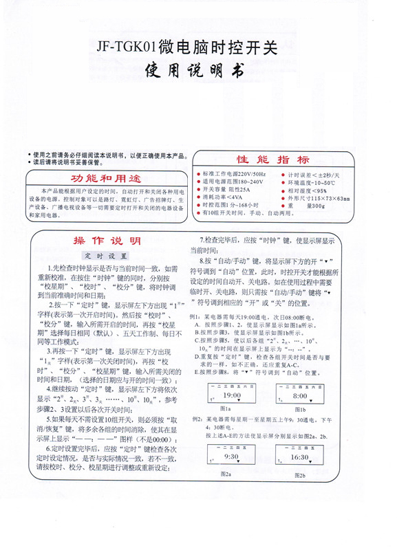 微電腦時控開關(guān)JF-TGK01